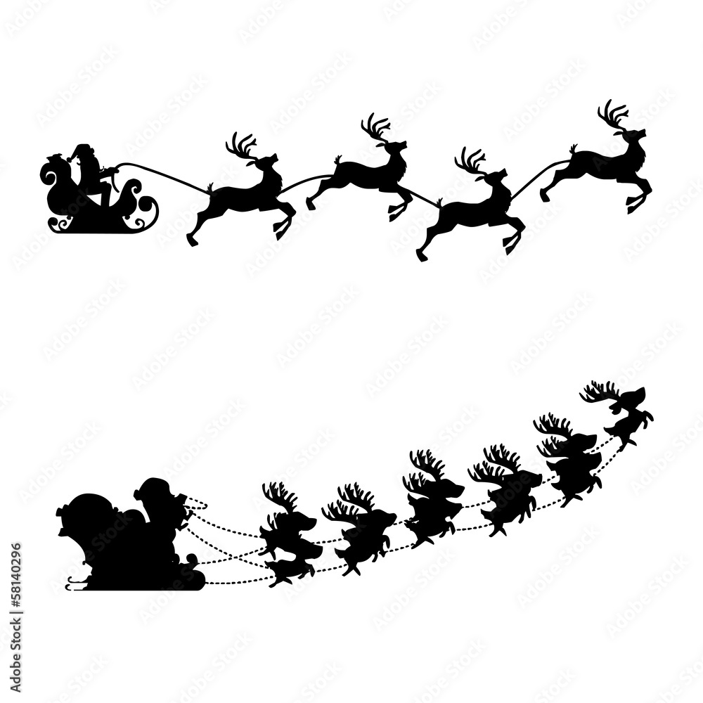 Schlitten Rentier Weihnachten Silhouette Vektor Set Sticker | Wall Decals-kebay